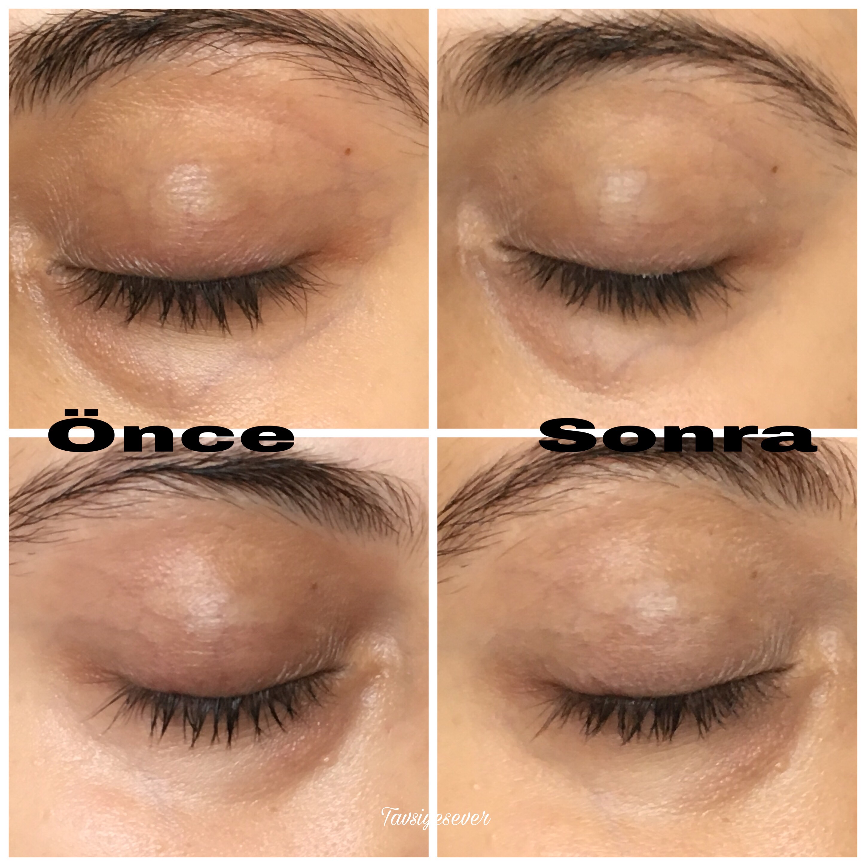 Öncesi ve sonrası kısımlarına bakarsanız farkın çok az olduğunu düşünüyorum. Ama bana yetiyor günlük hayatta. Aylardır kullanıyorum, göz çizgilerime bir kere bile girdiğini görmedim. Bazı kötü özellikleri olsa da genel olarak alınabilir bir ürün. Yine de daha iyi versiyonları olduğunu düşünüyorum. Daha da almam. 😂