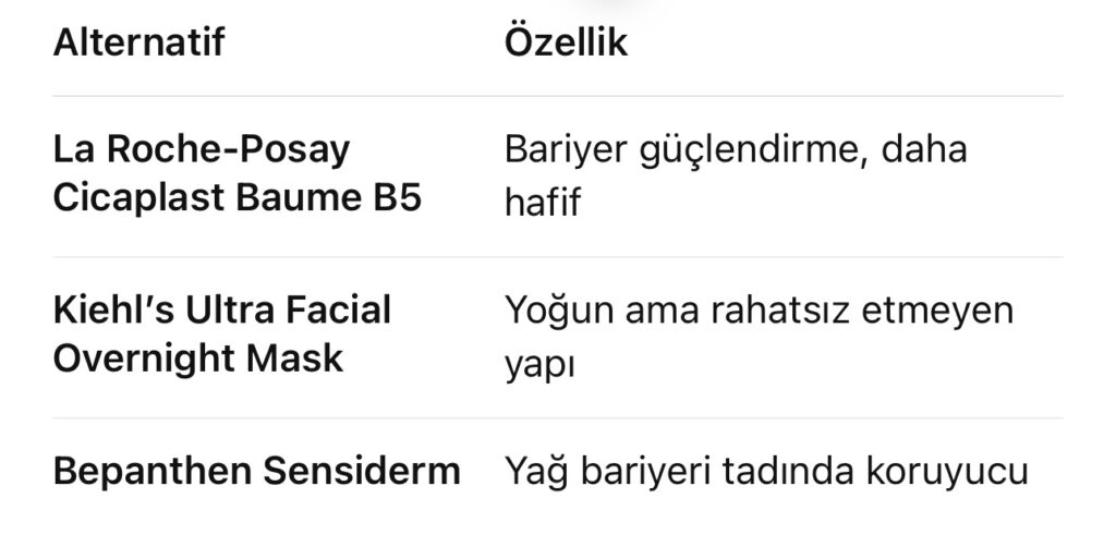 Klasik krem gibi değil; daha çok balm/maske/vazelin karışımı bir yapıda.