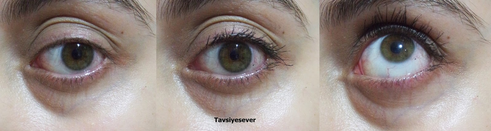 Maskara göstermeye çalıştığım gibi oldukça bulaşma yapıyor bende. Bu uygulamada kıvırıcı kullanmadım. O nedenle kirpiklerim kıvrık olmadı ama kıvırıcı kullanırsam onları kıvrık tutuyor. Maskarayı aslında sevdim. Çünkü kıl fırçasına rağmen çok güzel ayırıyor. Hacim hatta uzunluk verdiğini söylemem ama uygulama yönteminiz ise hacim sağlamak mümkün. Ben günlük kullanım adına beğendim ama tabii kıvırıcı ile kullanınca 🙂 Gün içinde dökülme yapmadı. Abartılı kirpik sevenleri, kirpikleri ile şikayeti olanları pek de tatmin etmeyebilir.