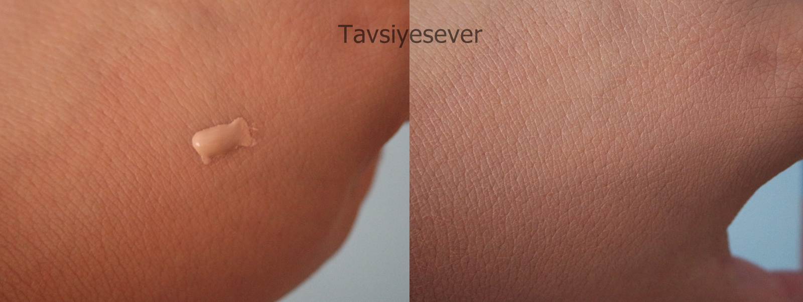 Ürünün akıcılığı fazla gibi denilebilir. Yani aslında ürün vadettiği gibi kıvam olarak orta bir dokuya sahip. Cidden mat bir bitiş sağlıyor. Yukarda azıcık bir ürünü elime aldım. Oldukça geniş bir alana yayılıyor. Yüzümde uygulanmış halini de göstermek isterim. Kapatıcılığı için siz yorum yapın. Kapatıcılık da göreceli bir kavram. Bana göre orta kapatıcılığı var. Ürün yüksek dese de ben daha yükseklerini de gördüm. Ama yapısının hiç ağırlık hissettirmediğini düşünürsem bu kapatıcılık çok iyi.