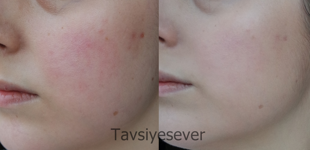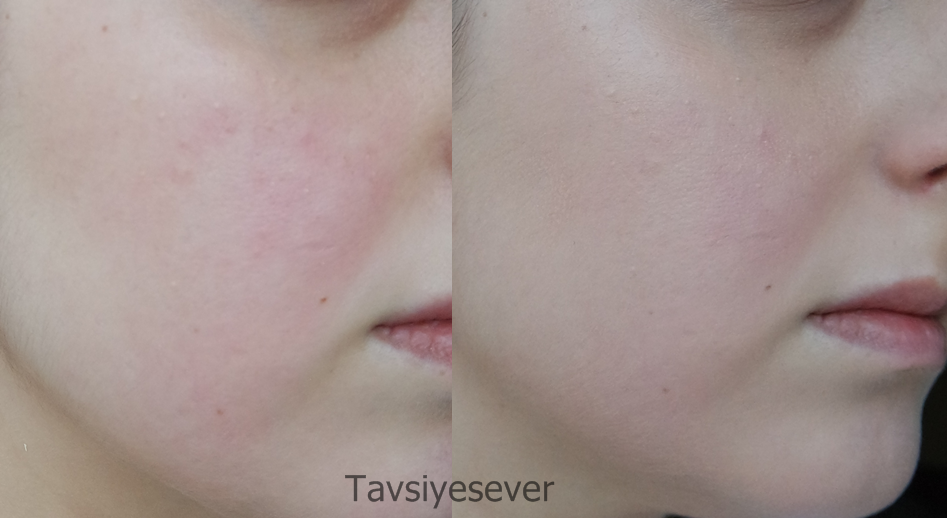 Yüzümün bir tarafı bir haylı kızarık ve lekeli. Orada kapatıcılığı daha iyi tayin edebilirsiniz. Bende olan 11 vanilla rengi. Renginden memnun kaldım. Biraz pembe gibi geldi. Ama gün boyu oksitlenme olmadı bende. Gün boyu kalıcı oldu. Yerinden oynamadı. Mat, aydınlık veren, hafif, elle uyguşamaya çok uygun bir yapısı var. Kış aylarında kuru cildimde asla kullanamam. Ama yine de iyi bir nemlendirme ile şansımı denemek istiyorum. Yağlı ciltler bence şans verebilir. Çok beğendiğim bir ürün oldu. Çok sevilen Loreal Lumi Magique fondoteni ne kadar sevmedi isem bunu kuru cildime rağmen o kadar sevdim.