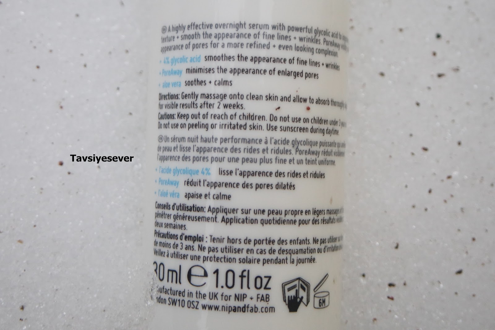 Bugün sizlerle bitmek üzere olan yani aylardır düzenli kullandığım bir üründen söz etmek istiyorum. Nip+Fab Glycolic Fix Serum benim büyük ümitlerle aldığım bir üründü. Daha evvel makyaj blogumda bahsetmesemde markanın BB kremini de kullandım. Watsonsta satılan bu markanın BB kremini ben yurtdışından satın almıştım.