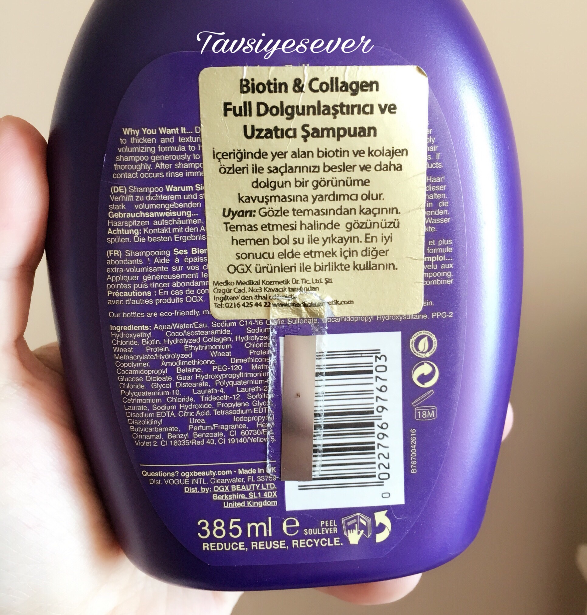 Merhaba arkadaşlar, uzun zamandır şampuan deneyimlerimi sizlerle paylaşmadım. Bunun sebebi çok zor şampuan bitirmem ve bitirmeden yazmak istememem. Her gün yıkanan biriyim ama şampuanı çok az elime alır, sulandırır ve öyle kullanırım. Yıllar evvel doktorum bu şekilde tavsiye etmişti ve çocukluğumdan beri kullanım şeklim budur. Gerçek ve kaliteli şampuanlar da zaten yapı olarak oldukça yoğun oluyorlar. Sahte şampuan mı var derseniz evet var. Haberlerde de sık sık duyar olduğumuz gibi sahteciler şampuana da el atmış çoktan. Ben size bugün gerçek OGX Biotin and Collagen Şampuan deneyimlerimi anlatmak istiyorum.