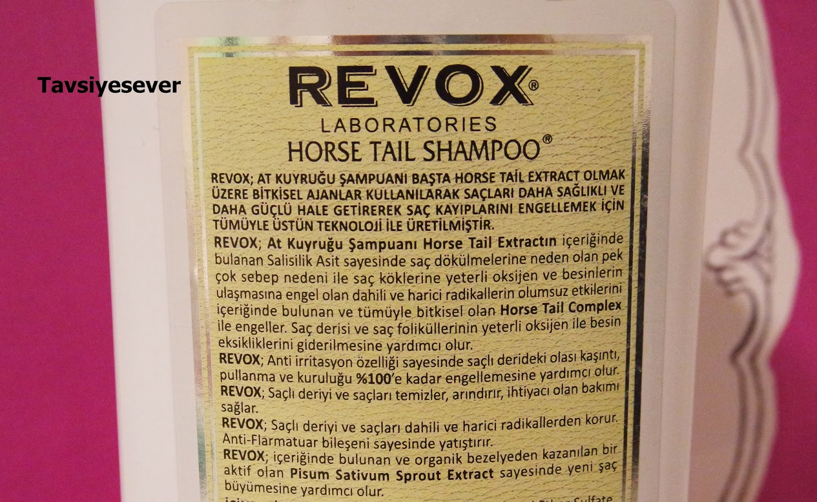 Sosyal medyada farklı farklı markaların at kuyruğu şampuanlarını hepimiz görmüşüzdür. Revox‘da bunlardan biri. Hemen her at kuyruğu şampuanının vaatleri aynı. Şimdi sizinle Revox’un vaatlerini paylaşalım. Saç kayıplarını engellemeyi, daha canlı, güçlü yani sağlıklı saçları vaadediyor. İçerisinde bulunan salisilik asit sayesinde ölü deriden temizlenen kafa derisinden saçlara oksijen ve besin ulaşması kolaylaşıyor. Ayrıca kaşıntı gibi rahatsız edici durumları önlemek de vaatleri arasında.