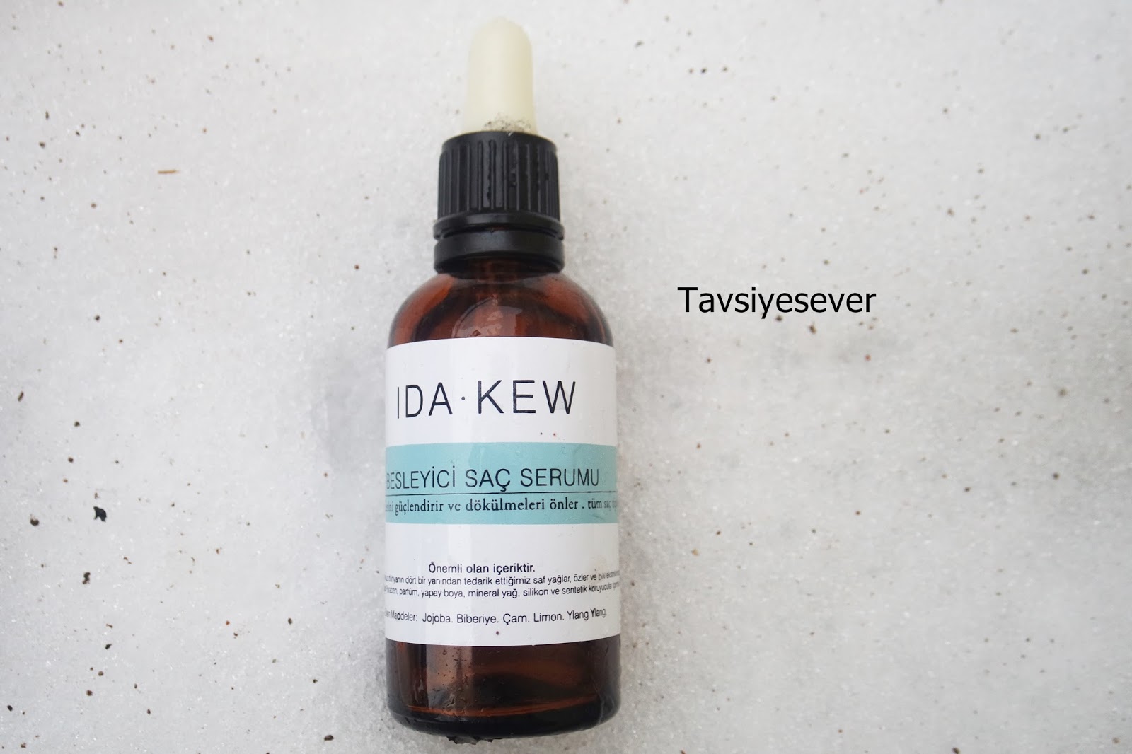Ida.Kew Besleyici Saç Serumu: Bu ürün benim bu yazıda anlattıklarım arasında en beğendiğim ürün oldu. Geceden saç derime masaj yaptım. Sabaha kadar bekleyip sabah saçlarımı yıkadım. Saç dökülmemi durdurmada en büyük destekçim olduğu için bittikçe alacağım ürünlerden. Ürün 50 ml ve pek bereketli olduğunu söyleyemem.